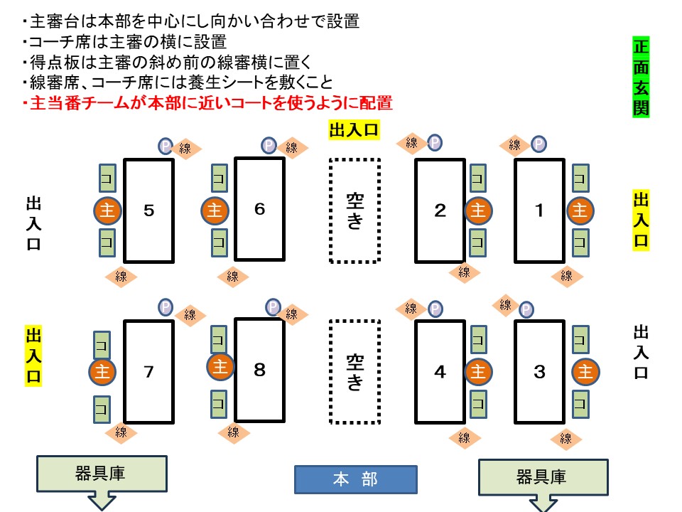 8:15>主/サブ当番、大会役員 正面出入り口集合