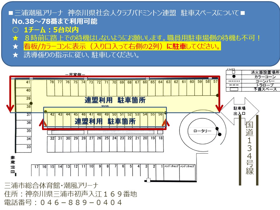 ■※体育館前の商業施設の駐車場は、絶対に使用しないで下さい。