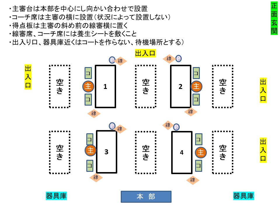 8:15>主/サブ当番、大会役員 正面出入り口集合